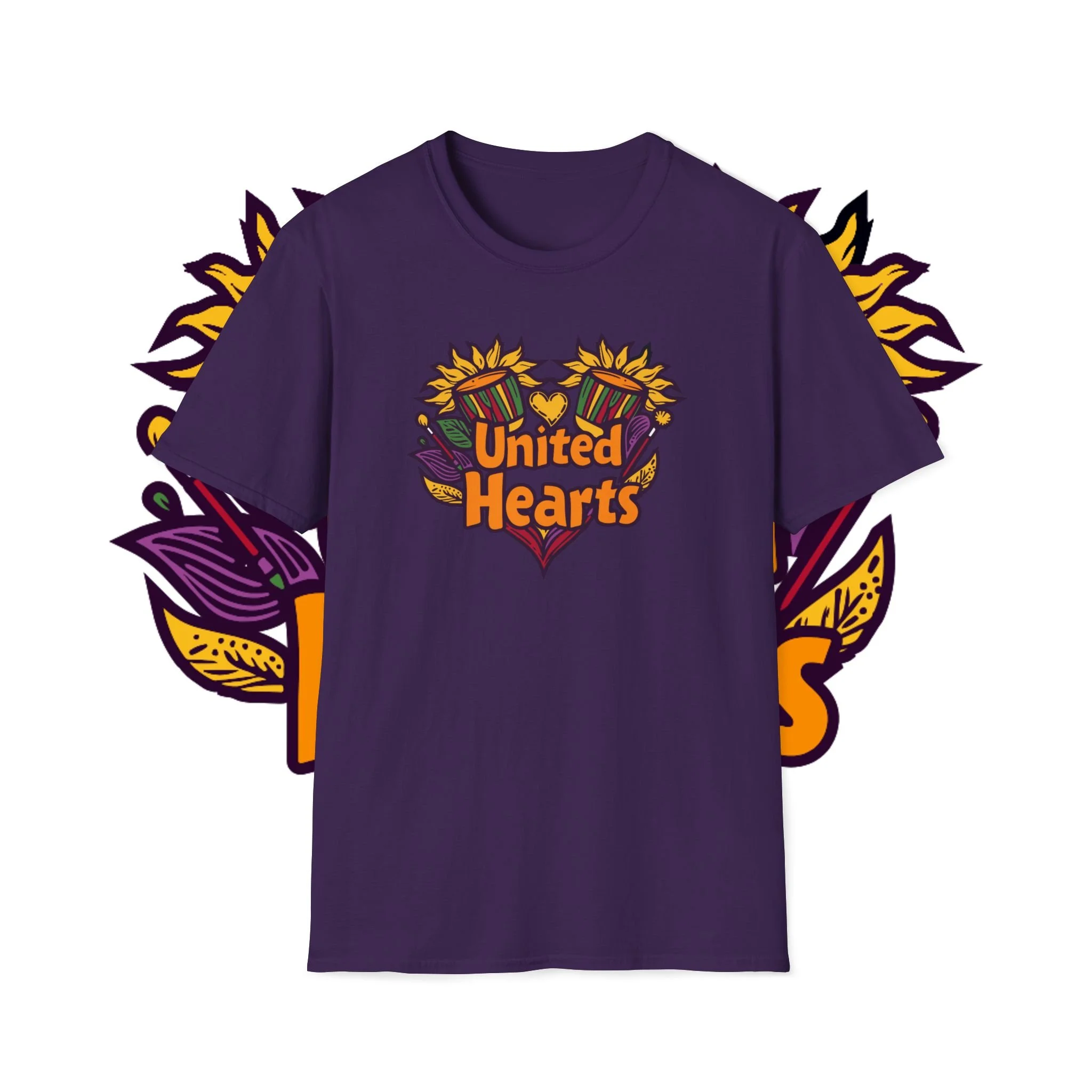 Store › United Hearts T-Shirt Image 1 of 5 Image 2 of 5 Image 3 of 5 Image 4 of 5 Image 5 of 5 United Hearts T-Shirt from $16.47 Color: Select Color Purple Size: Select Size S M L XL 2XL 3XL 4XL Quantity: Add To Cart Added!
